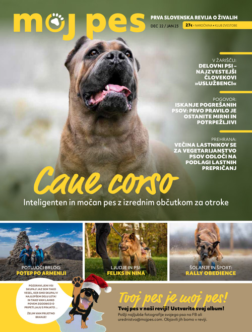 V decembrsko-januarski številki revije Moj pes predstavljamo pasmo cane corso, mogočnega čuvaja, ki  je obenem dobrodušen družinski pes z izjemnim občutkom za otroke.