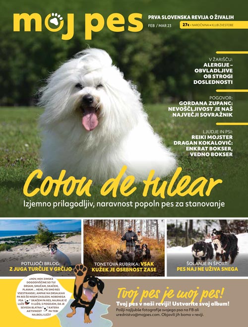 Čeprav zima očitno še ni rekla zadnje, v osrednji temi februarsko-marčevski številke revije Moj pes podrobno pišemo o alergijah, vrstah le-teh, kako jih odkriti in omiliti.
