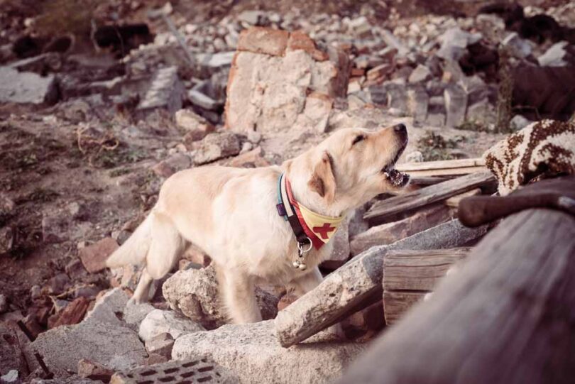 Zaradi plazu ga je vrglo ob zid in ujet je bil pod skoraj štirimi metri ruševin. Ločen od družine je ostal brez pomoči, dokler ga ni našel pes Tucker, ki je z glasnim in vztrajnim laježem opozoril reševalce na njegovo lokacijo.