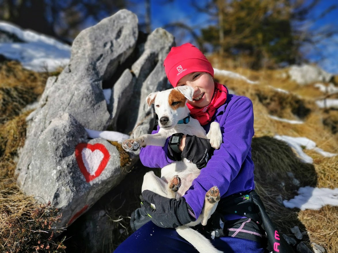 Imam štiri leta staro psičko Chilly, pasme Parson Russel. Veliko dela je vloženega vanjo, predvsem v smislu vzgoje, in to celotne družine. Ko smo jo dobili, smo se odločili, da ne obiščemo pasje šole, ker smo mnenja, da je ta v prvi vrsti za lastnike. Tako lahko rečem, da kljub vsemu prebranem o zahtevnosti vzgoje te pasme je Chilly dober pes. Je pa res vanjo vloženih veliko ur dela, vztrajnosti, ponovitev … Enako kot pri otrocih! Doslednost, vztrajnost in postavljanje meja. Najini trije so kot majhni vedno spali in niso nič posebnega kot ostali otroci, ki niso  »mogli« spati. In enako je pri psu. Tako je Chilly stalna spremljevalka naših skupnih poti po gorah.
