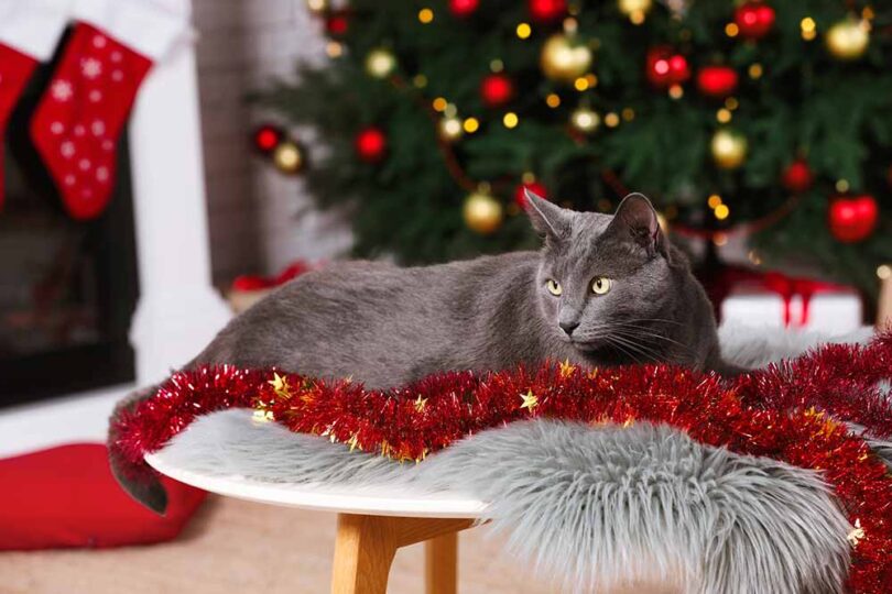 Mačke in psi, še posebej mlajše živali, so radovedni, praznični čas pa v gospodinjstvo prinaša vse vrste novosti, od drevesc in okraskov do embalaže in novih živil.