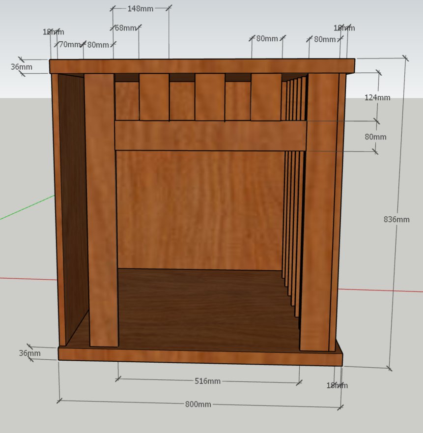 “Uporabite lahko kateri koli les. Hiška je za notranjo uporabo in po meri večjih pasem, lahko pa mere prilagodite tudi za manjše pse,” pove in postreže s prikazom svojega načrta.