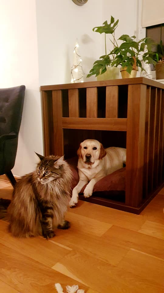 “Ideja je bila od žene,” uvodoma pove Tomaž Kogej iz Maribora, ki, lahko bi rekli, ima nov hobi – izdelal je že nekaj kosov pohištva za družinska člana na štirih nogah. 6-letno labradorko Jono in 10-letno Maine Coon mačko Luno.