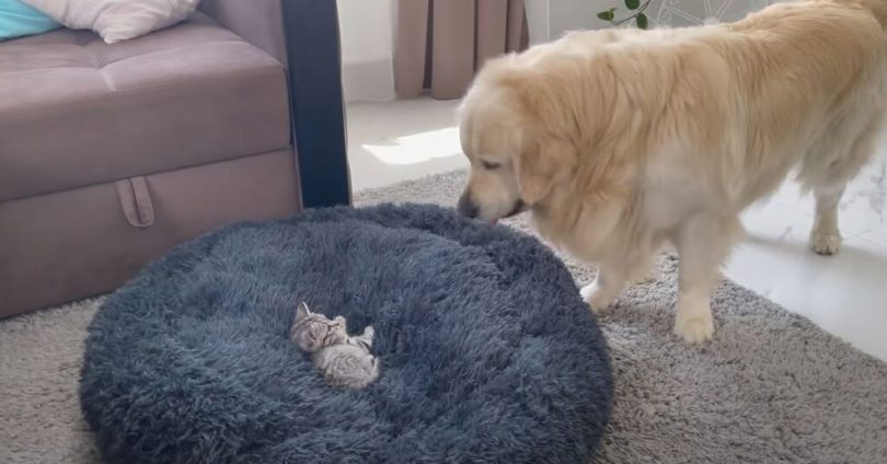 Vsaj sodeč po spodnjem posnetku. Mačkonček se je udobno namestil v pasjo posteljico in nima niti najmanjšega namena, da bi jo zapustil.