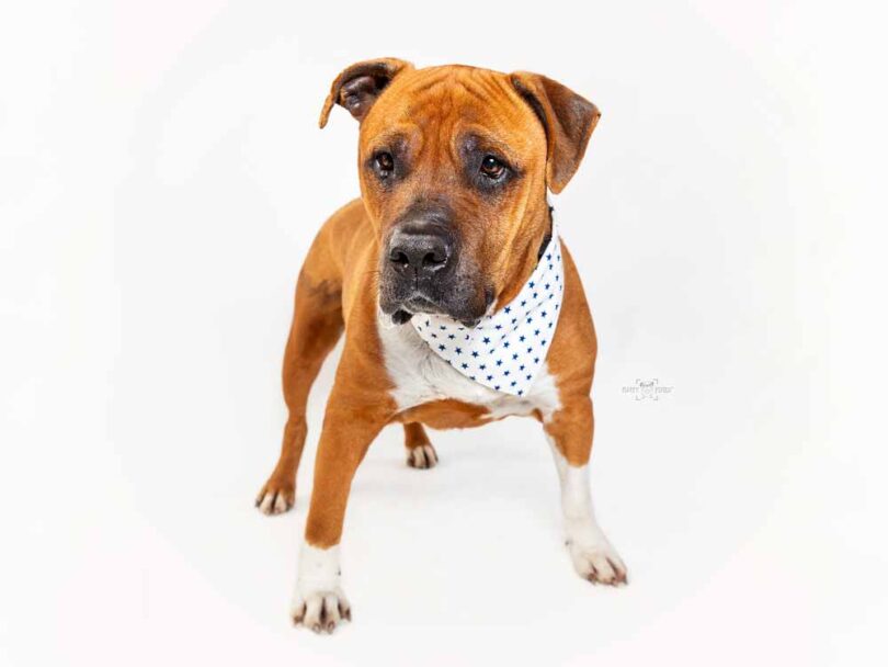 Bobi je odrasel samček pasme Ameriški pit bull terier.