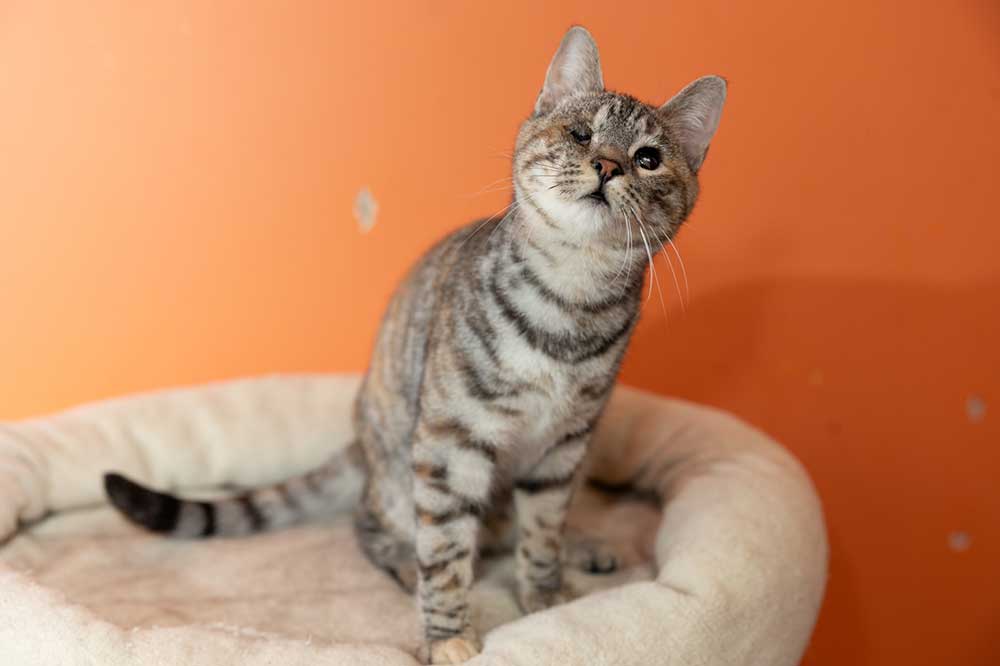 Elara ima posebno, sivo-tigrasto dlako z oranžnimi lisami. Zaradi poškodbe oči je praktično slepa, a se v prostoru tako dobro znajde, da je to praktično ne ovira. Vseeno bi raje videli, da odide v dom, kjer bo bivala v notranjih prostorih. Z drugimi muckami nima težav in je rada v družbi.