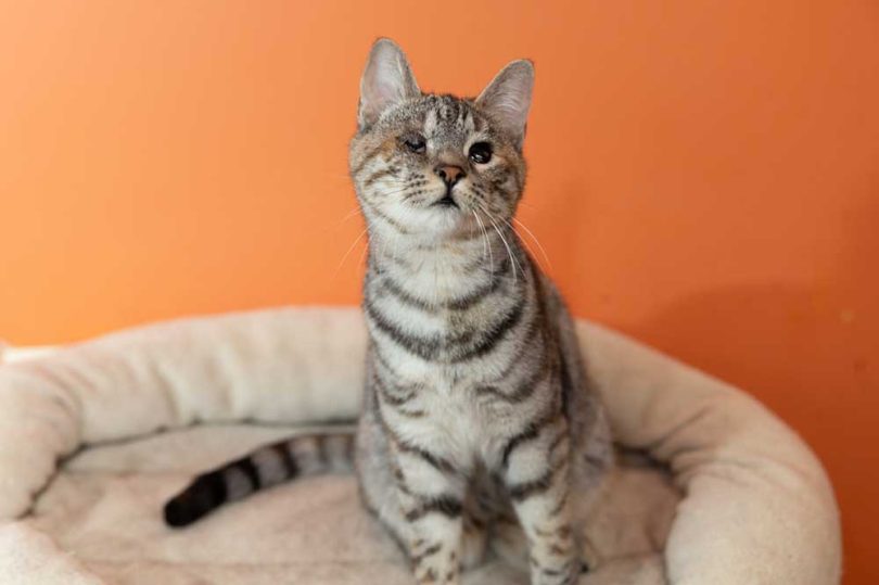 Elara ima posebno, sivo-tigrasto dlako z oranžnimi lisami. Zaradi poškodbe oči je praktično slepa, a se v prostoru tako dobro znajde, da je to praktično ne ovira. Vseeno bi raje videli, da odide v dom, kjer bo bivala v notranjih prostorih. Z drugimi muckami nima težav in je rada v družbi.