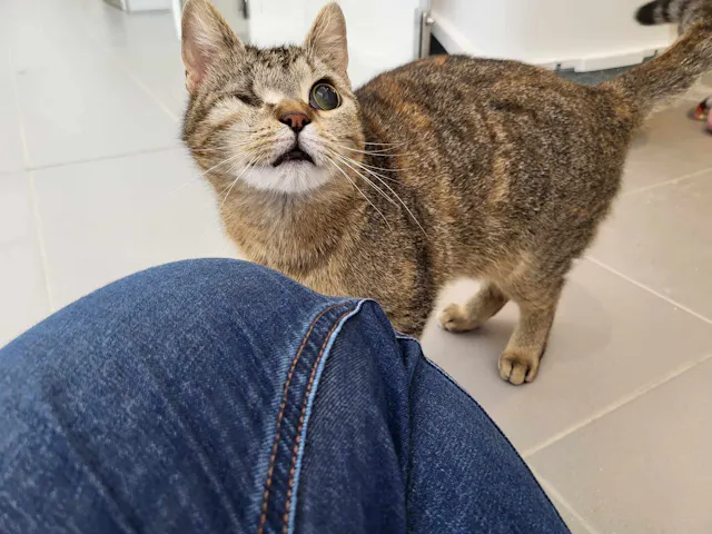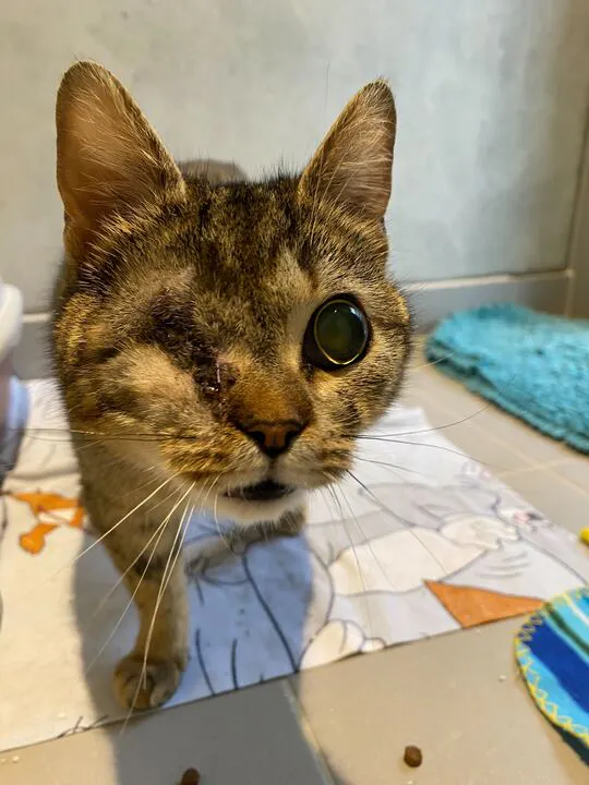 Helga je odrasla slepa mucka, ki je primerna izključno za notranje bivanje.