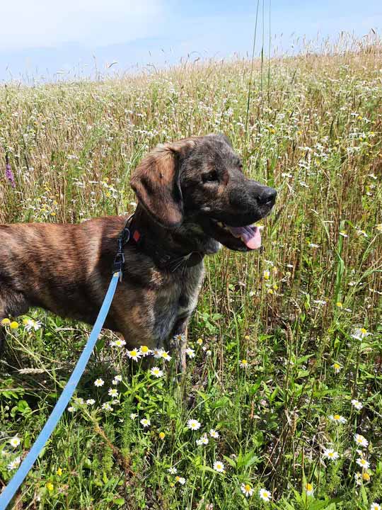 Je izjemno prijazen do ljudi in obožuje igranje z žogicami. V družbi drugih psov se še vedno obnaša razigrano, medtem ko bi mačke z veseljem preganjal. Miško že obvlada kar nekaj trikov in tehta približno 25 kg.