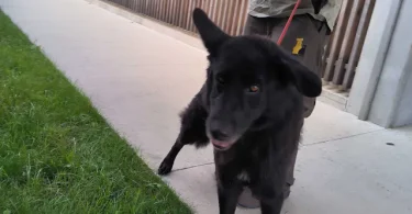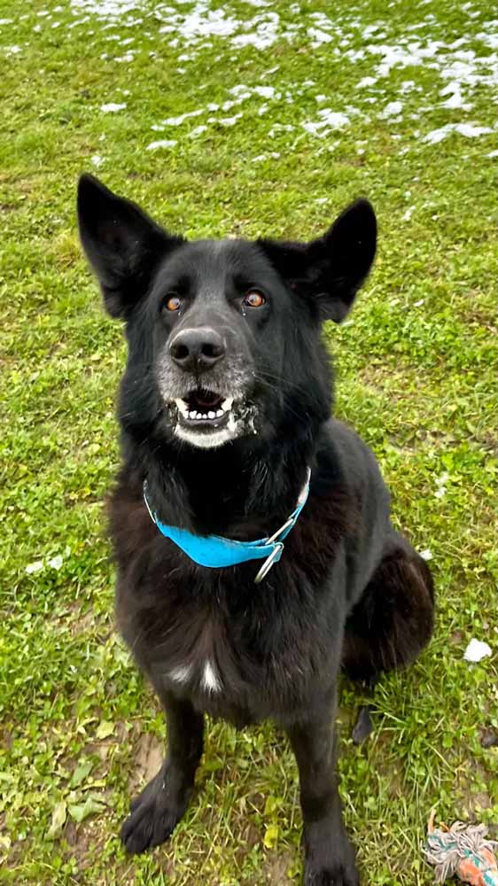 Spominja na črnega nemškega ovčarja. Tehta okoli 30 kg, s tem da je suh, kar je posledica njegovega slabega apetita.