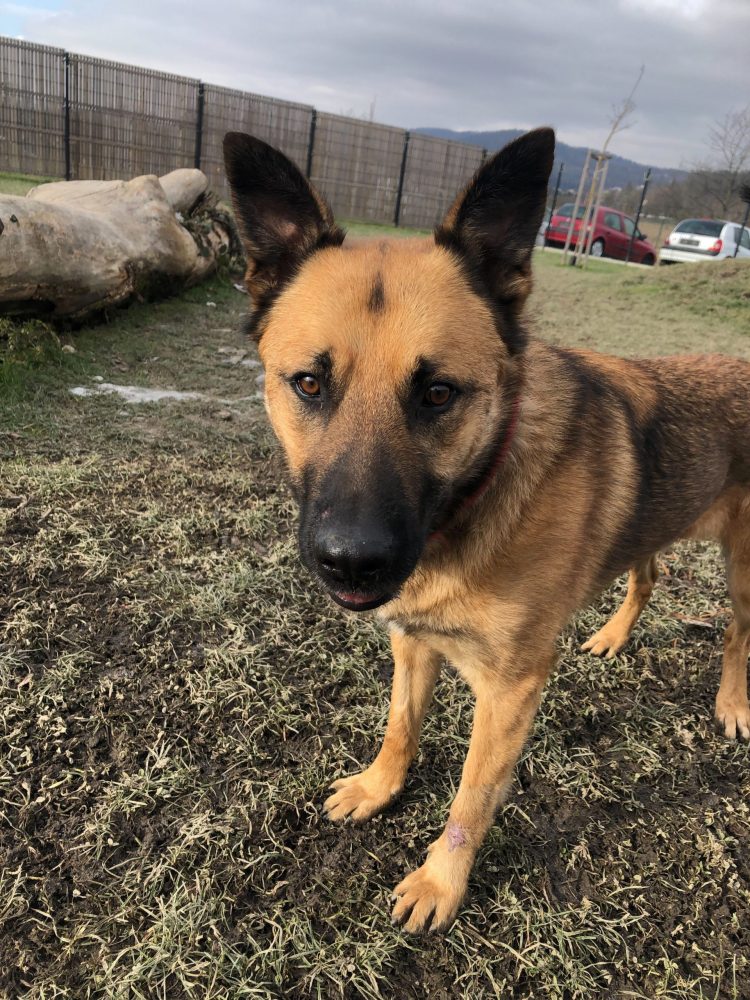 Luka se je v zavetišču malo poredil, je pa še zmeraj precejšen suhec. Tehta okoli 20 kilogramov. Je v tipu belgijskega ovčarja.