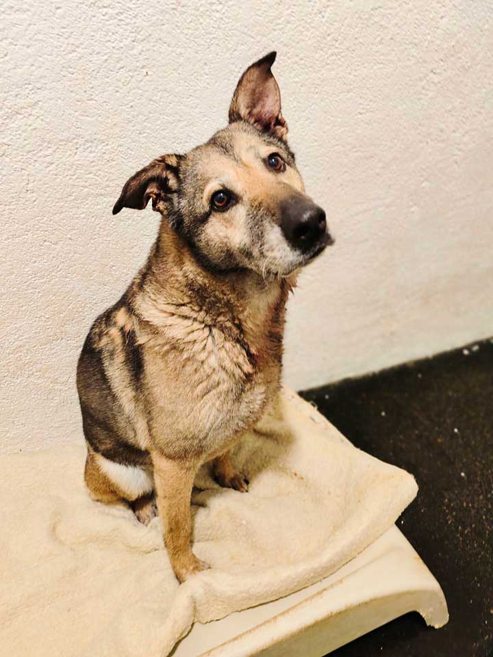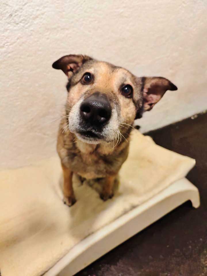Psička mešanka večje rasti (28kg) v 8. letu starosti. Prijazna do ljudi, umirjena.