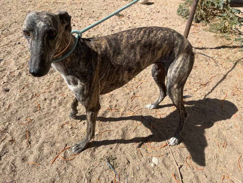 Marina je mlajša galgina rumeno brindle barve, ki s svojim karakterjem čisto navduši.