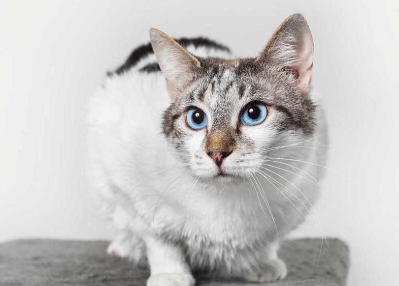 Ina je čudovita bela samička, z rjavo-tigrastimi lisami in sijočimi modrimi očmi.