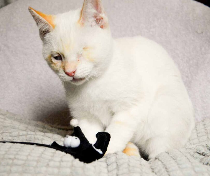 Chico je okrog pol leta star bel mačji samček z oranžnimi vzorci.