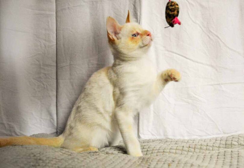 Chico je okrog pol leta star bel mačji samček z oranžnimi vzorci.