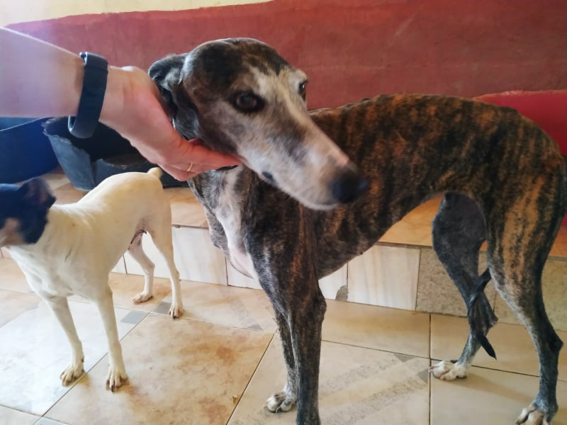 Grace je srednje velika galgina progaste barve s sivo obrazno masko. Je zelo simpatična, umirjena, vesela psička, ki obožuje človeško družbo in bližino.
