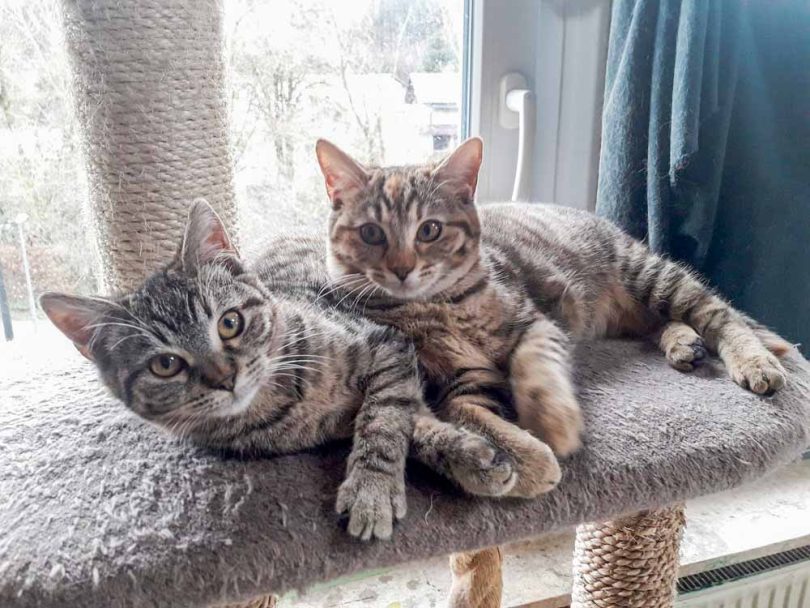 Tigrasti trikolorki Sahara in Pixi sta sestrici. Razumeta se z drugimi mucki in kužki.
