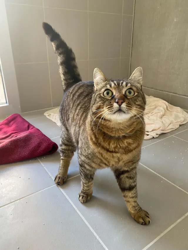 Zooki je tigrast muc, star dve leti.