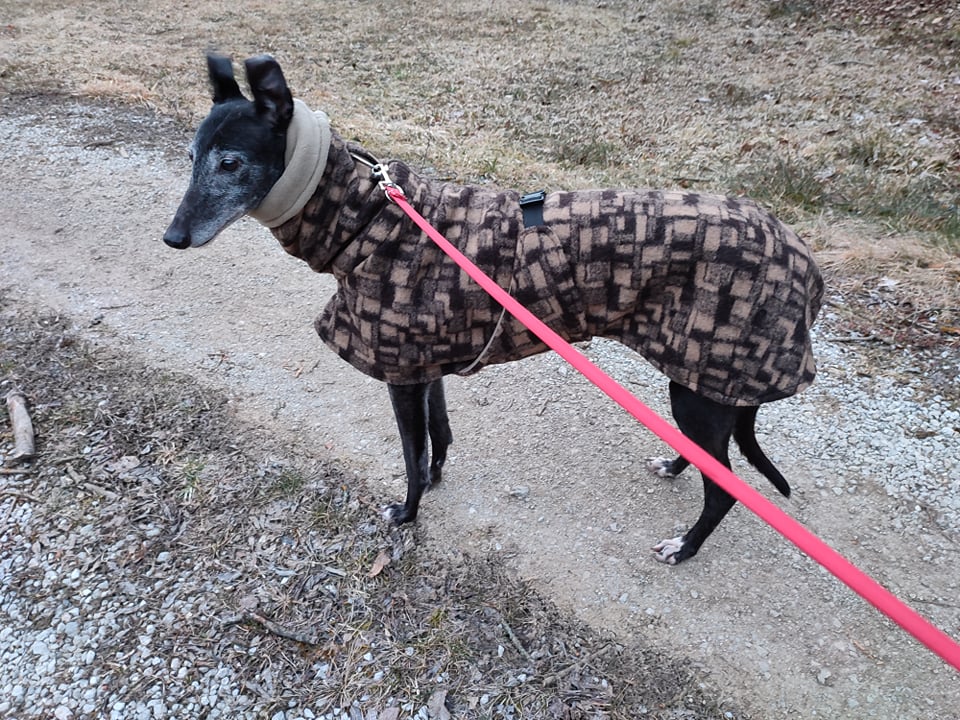 Popularno Tiffany oz. po domače Fani je srednje velika greyhoundica črne barve s sivo masko in z že nekaj ‘snežinkami’ po telesu.
