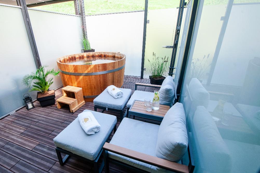- paket SPA RAZVAJANJE v enem izmed šestih ekskluzivnih apartmajev Spa Suite Dobrna 4*, ki ponujajo edinstveno kombinacijo in doživetje udobja v zasebnem wellnessu. Vsak apartma ima lasten wellness s turško savno in zunanjo leseno kadjo s termalno vodo s temperaturo 35 °C;