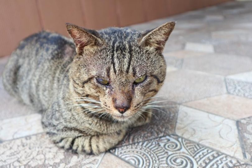 Nutmeg, kar pomeni muškatni orešček, je star maček, ki je pred 26 leti zataval na vrt zakoncev Finlay v Veliki Britaniji.