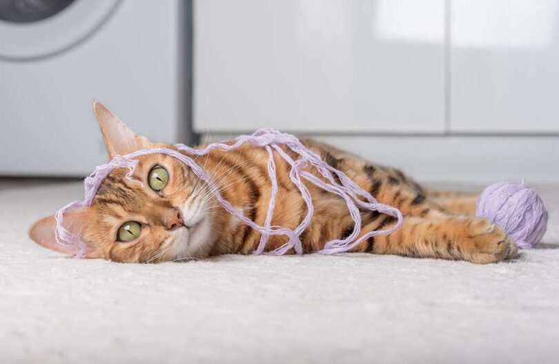 A prav te drobne nitke, ki so videti nedolžne in ljubke, sodijo med najnevarnejše predmete v mačjem okolju.