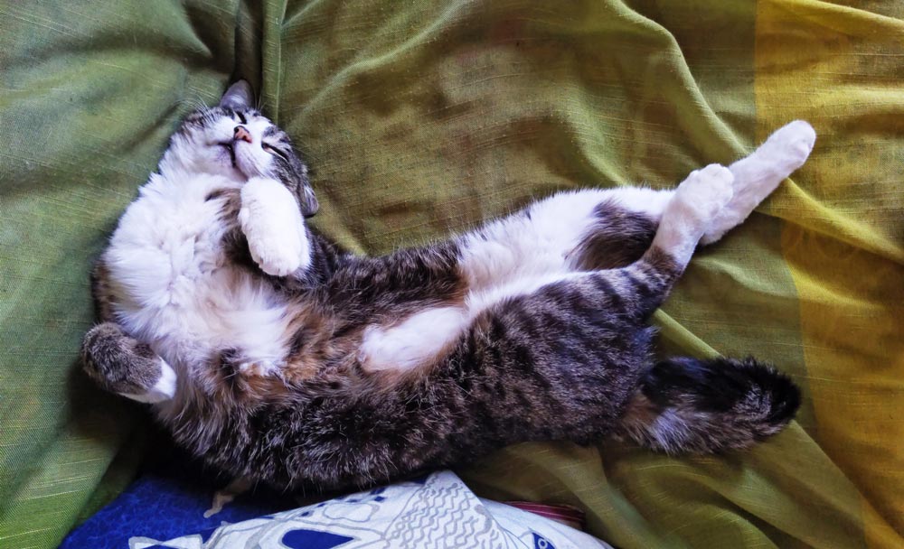 Mačke včasih spijo v pozicijah, ki so videti zelo neudobne. A za razliko od psov, so mačke neverjetno ‘upogljive’. Pozicija, ki nam je videti čudna in neudobna je lahko za našo mačko zelo udobna.