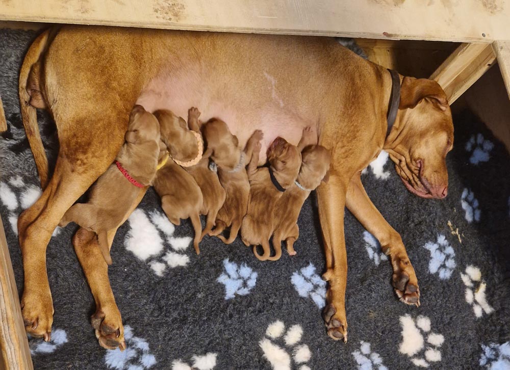 To je prvo leglo kratkodlakih madžarskih ptičarjev psarne, ki ima dolgoletne izkušnje z vzrejo saj so pred tem imeli vzrejo dobermanov.