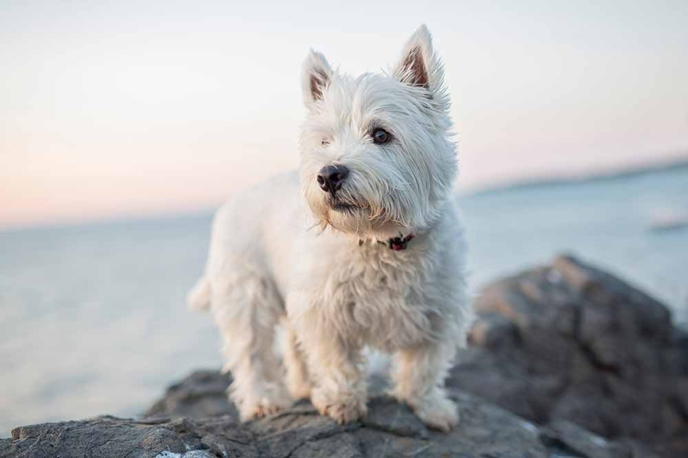 »Westie« ima dvojno belo dlako. Sprva vzrejen za lov, je danes predvsem družabniški pes, ki je pameten in igriv. Stalno krtačenje pride skupaj s pasmo.