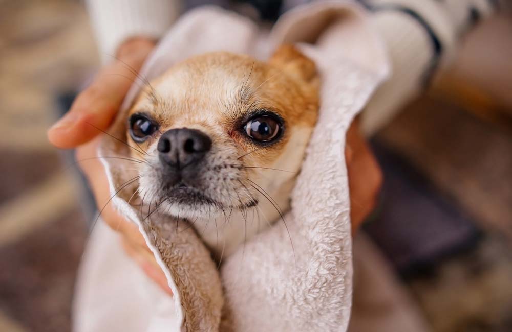 Pri kratkodlaki različici čivave je mokra dlaka skoraj neopazna. Ker je tako majhna, se posuši že v naročju ali med vožnjo domov.