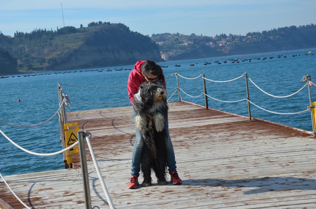 »Obožujem kužke – takšne in drugačne; so del mojega življenja. Bradata škotska ovčarka Anaya – Aja je vstopila v naš oziroma mi v njen svet pred dobrimi petimi leti. Čakali smo pol leta, da je prikukala na svet in se zaljubili vanjo na prvi pogled. Je izredno prijazna do ljudi, malih in velikih ter drugih živali. In verjamete ali ne, tudi poštarji jo imajo radi, saj ne laja nanje. Prišla je v stanovanje k dvema mačkama; na žalost je ena pri 16 letih zbolela, druga pa je zdaj že v 18. letu starosti in Aja vestno pazi nanjo. Problemček pri ‘bradicah’ je, da so – vsaj naša – zelo občutljivi na zvoke, a ne na grmenje, ampak na žogo, rolke, sušilec za lase in podobno. Tako je sem ter tja malce prestrašena. Radi jo imamo takšno, kakršna je. Je naš sonček. Je učljiva, zelo pametna, rada gre z nami potovat, obožuje vodo in ima ogromno energije. Vsi psi so po svoje čudoviti, a za nas je Aja čarobna. Imejte radi svoje kužke, ne glede na to, kakšni so. Kdo te je vedno vesel, ko prideš domov? Kdo se stisne k tebi, ko si žalosten, s smrčkom briše tvoje solze, ali s teboj skače od veselja ?