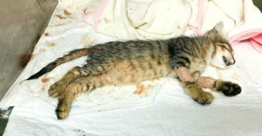 Mačka je bila kmalu za tem s strani zgrožene priče dogodka, še živa odpeljana na veterino, kjer je ponoči podlegla poškodbam.