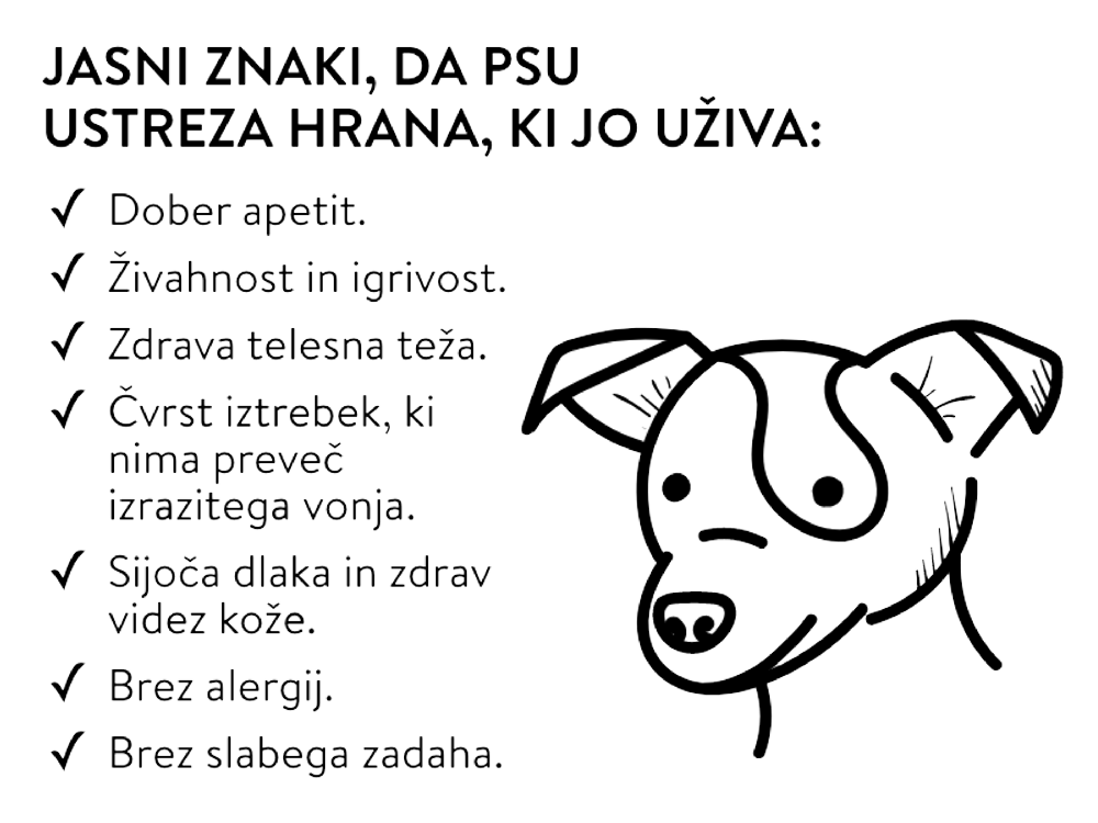 Vaš pasji prijatelj na različne načine pokaže, da vas ima rad in da mu je v vaši družbi prijetno. Maha z repom, se pride pockrljat, skače, ko pridete iz službe, ter vam navdušeno “predstavi” palico, ki jo je našel na sprehodu po gozdu. Če bi lahko, pa bi z vami zagotovo delil tudi male pasje skrivnosti o prehranjevanju. Za zdravje, dolgoživost, dobro počutje in neštete pasje podvige namreč potrebuje kakovostno hrano, ki mu kar najbolj odgovarja.