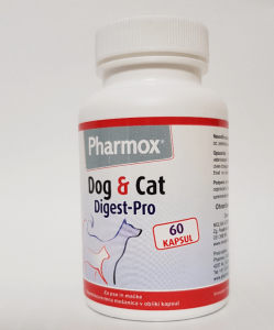 Pogosto se pri psih in mačkah soočamo s prebavnimi težavami – driska, mehko blato, napenjanje, občasno zaprtje, napihovanje, pretakanje … Težave so lahko posledica porušenega ravnovesja črevesnih mikroorganizmov. Ravnovesje v korist dobrih bakterij vzpostavimo z DIGEST – PRO kapsulami, ki edini vsebujejo 10 različnih sevov probiotičnih bakterij in prebiotik.