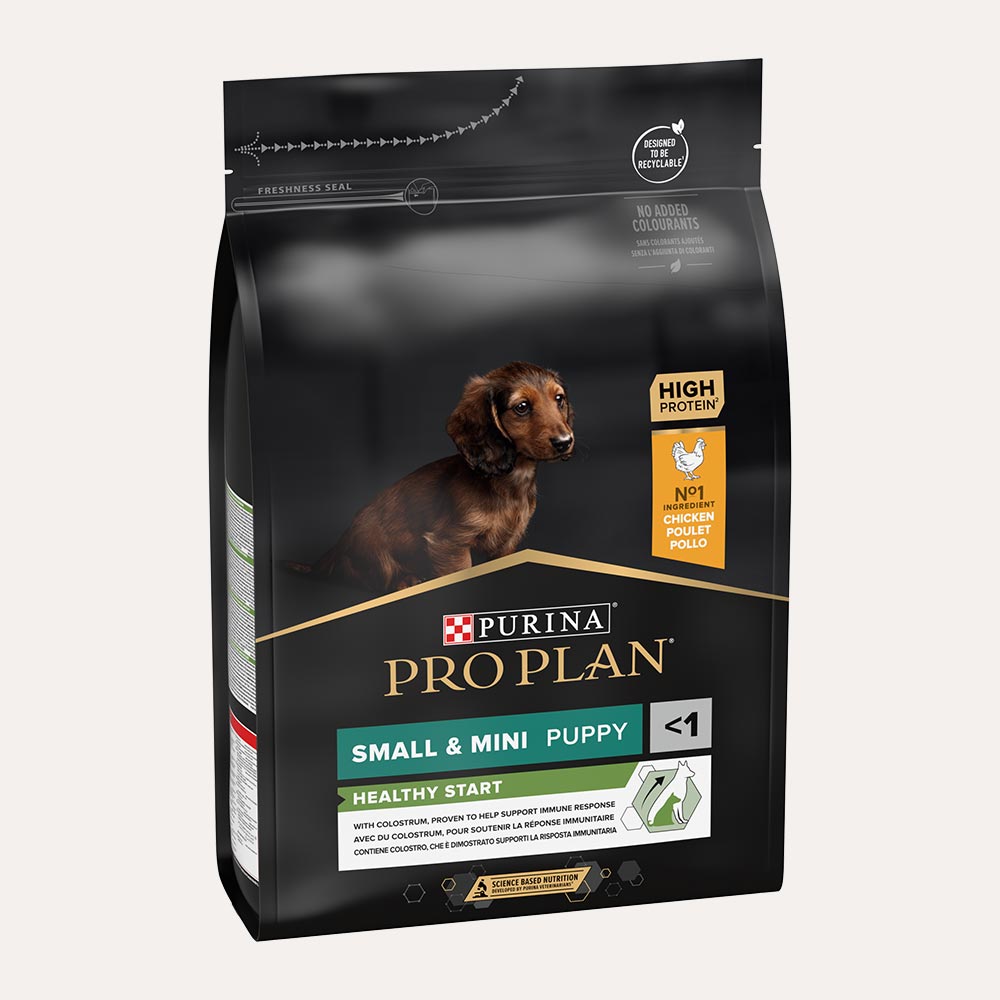Ker potrebujejo majhne pasme več pozornosti in nege zob ter dlesni, je hrana PURINA® PRO PLAN® Healthy Start SMALL & MINI PUPPY namenjena mladičkom majhnih pasem s težo manj kot 10 kg v odrasli dobi. Vsebuje vitamin D, minerale in omega-3 maščobne kisline, kar pomaga pri ohranjanju zdravih zob in dlesni že od samega začetka.