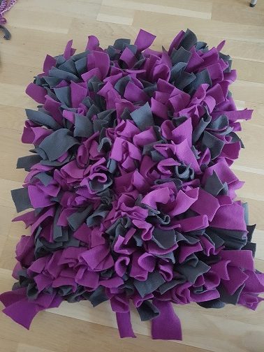 Uporabljamo jo tako, da med trakce iz blaga skrijemo pasjo hrano, psi pa hrano iščejo in se pri tem fino zaposlijo.