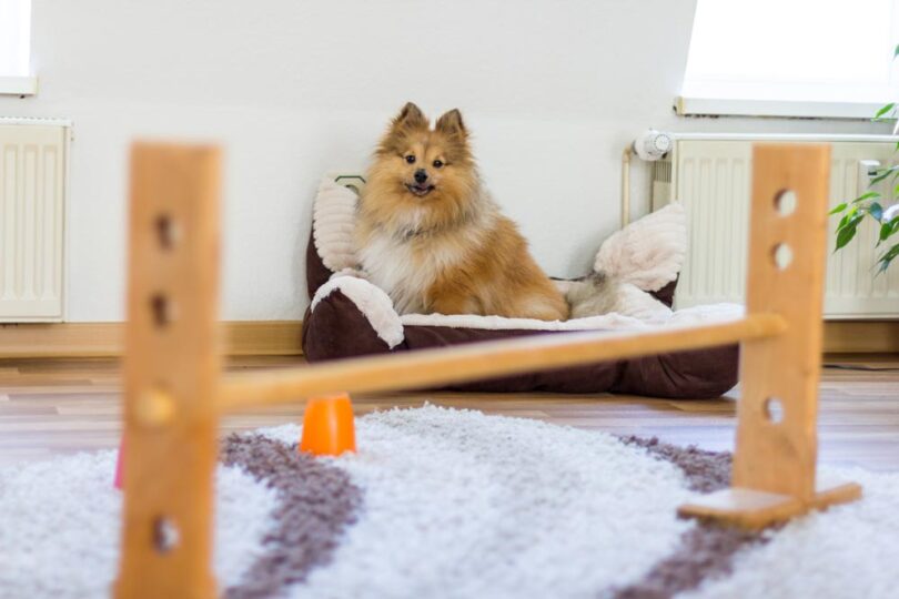 - Skakalne ovire: Zložite knjige in nanje položite metlo ali palico, da ustvarite nizke ovire za preskakovanje. Če imate majhnega psa, lahko uporabite tudi mehke blazine.