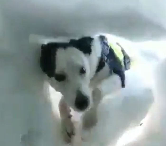 Psi reševalci pomagajo človeku v najrazličnejših situacijah. Poglejte si posnetke, kako izurjena psička Flo pomaga človeku, ki je ostal ujet v snegu.