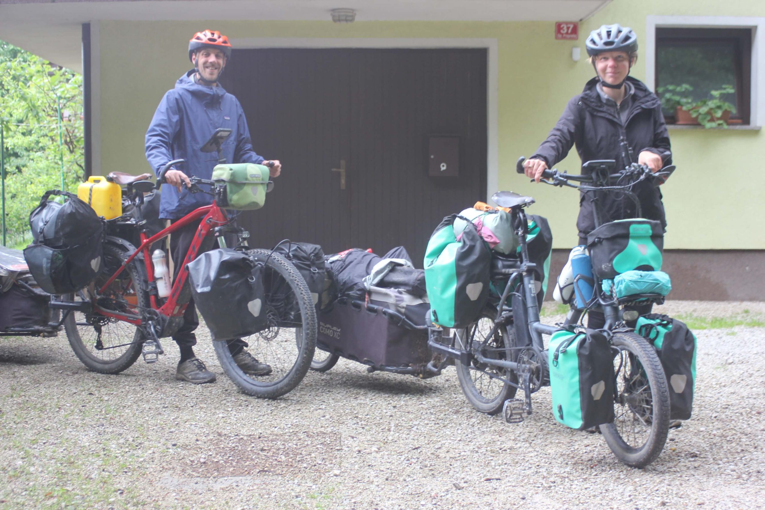 S kolesarjenjem bosta nadaljevala preko Madžarske, Slovaške in Poljske, v Nemčijo pa se nameravata vrniti septembra.