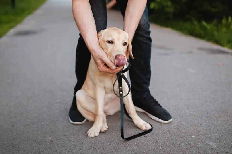 - Če vidite vrvico, trak ali podobno, ne vlecite, saj lahko psa poškodujete.