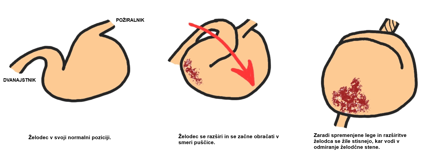 Strokovno pojav imenujemo sindrom razširitve in zasuka želodca (angleško gastric dilatation and volvulus, v nadaljevanju GDV), ki se še vedno pojavlja razmeroma pogosto in je v veterini ena izmed največjih urgenc. Če se simptomov ne prepozna in ne ukrepa hitro, je umrljivost zelo visoka.