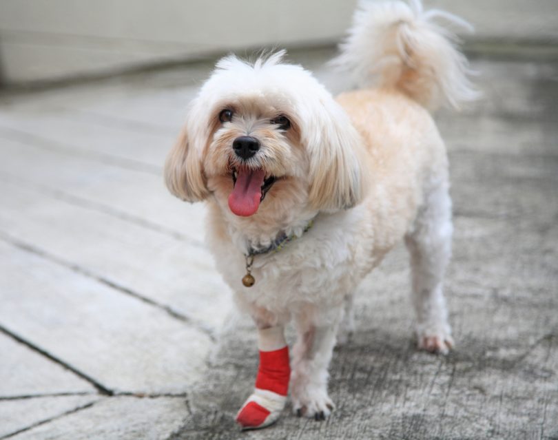 Če je mogoče, tujek fiksiramo (denimo s trikotno ruto) ali s povojem. S tem tujek ohranimo v določenem položaju in preprečimo nadaljnje poškodbe tkiva zaradi premikanja. Seveda je v tem primeru potrebna čim hitrejša veterinarjeva pomoč.