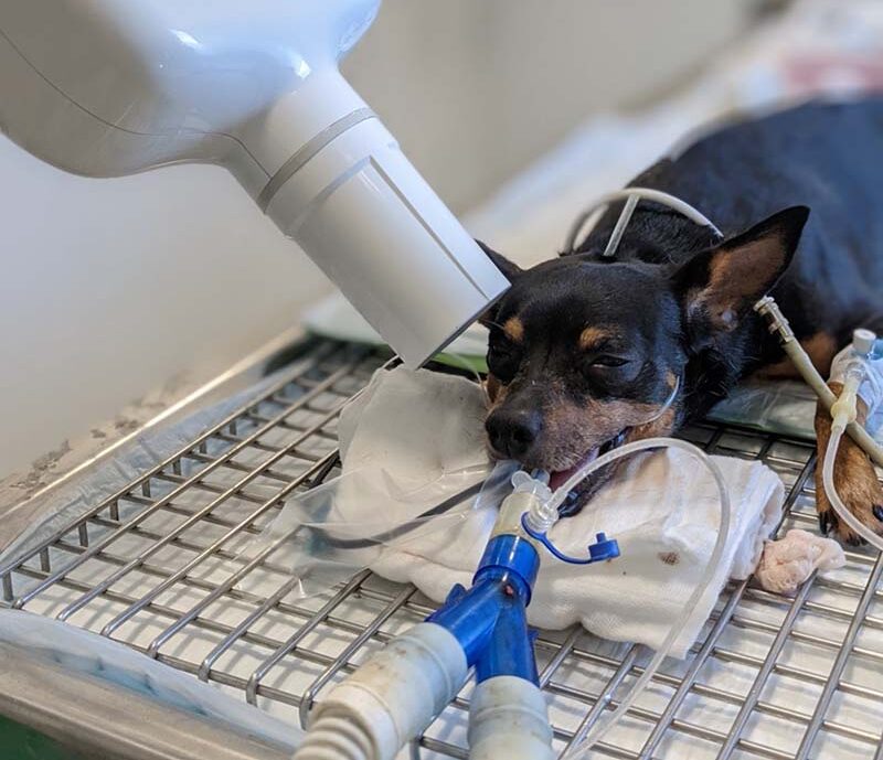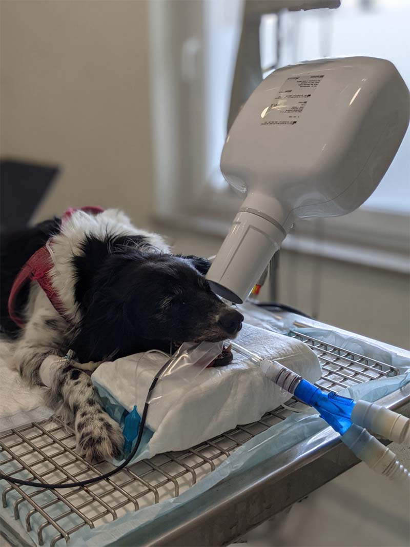 Pri tem vse operacije opravljajo v splošni anesteziji, ki vključuje intubacijo, infuzijo, monitoring življenjskih parametrov in spremljanje telesne temperature, vrednosti kisika, plinov v krvi ter frekvence srca in dihanja. Vse to zagotavlja visoko varnost anestezije ter pomembno prispeva k dobrobiti živali tekom celotnega posega.