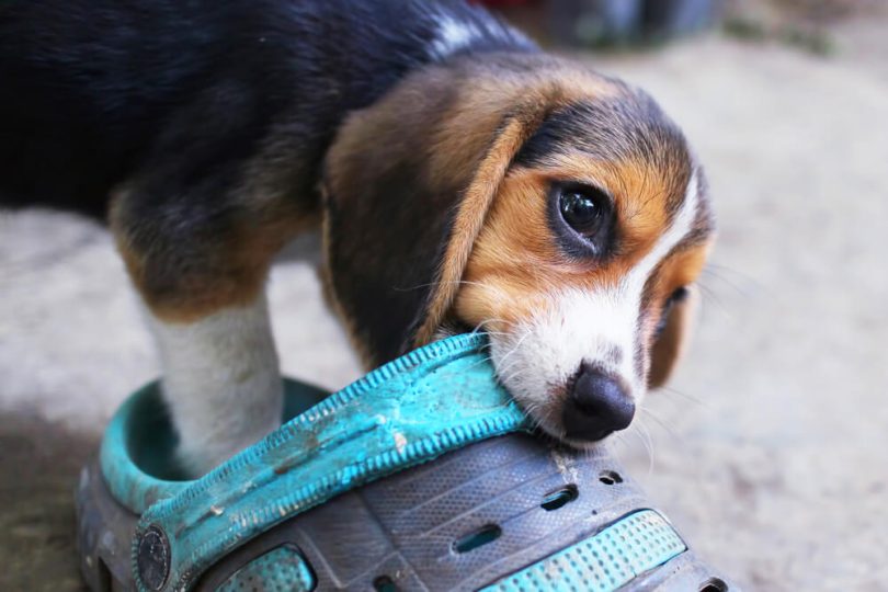 Psi uporabljajo usta za interakcijo s skoraj vsem v svojem okolju. Mladički morajo razviti to spretnost, kar lahko privede do tega, da med raziskovanjem širšega sveta okoli sebe pogrizejo vse, kar je na vidiku.