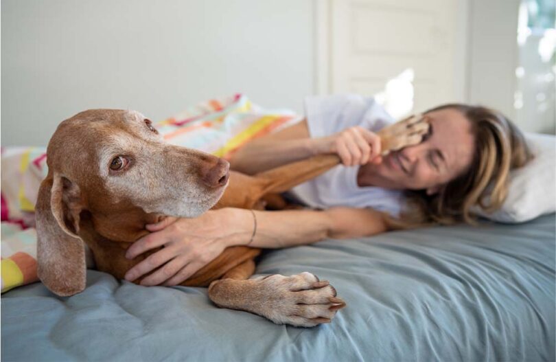 Če so nekoč večinoma vsi psi spali zunaj, danes skoraj polovica lastnikov svoje kosmatince redno gosti v svoji postelji, kaže avstralska raziskava iz leta 2024.