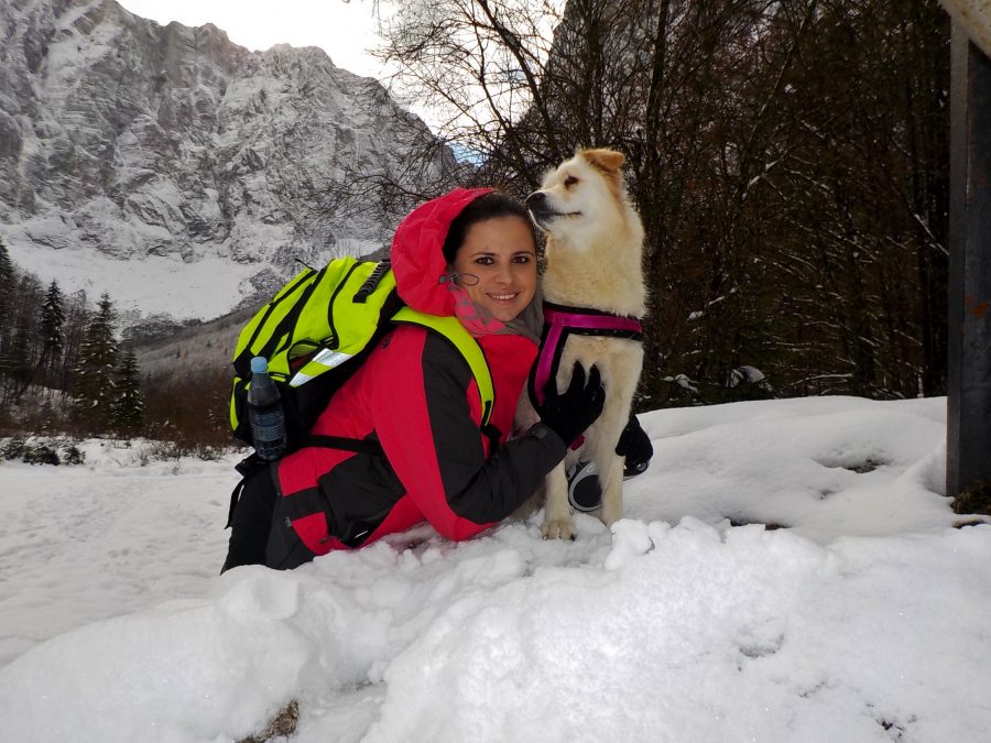 Izven doma jo imam vedno na povodcu, spustim jo le na velikih površinah, travnikih. Nikoli se ne oddalji od mene več kot dva ali tri metre. Tudi če Gala teče naprej, se Luna vmes ustavi in priteče nazaj. Navadili sva se na ukaz ‘pazi’, ki je prilagojen posebej za Luno. Vedno, ko rečem ‘pazi’, se ona ustavi, da glavo naprej, povoha, ali pa enostavno obide tisto, kar je prišlo na pot. Če vidim, da se nam približuje drug pes, pa ji rečem ‘kuža je’, da jo opozorim vnaprej, da se ne ustraši.