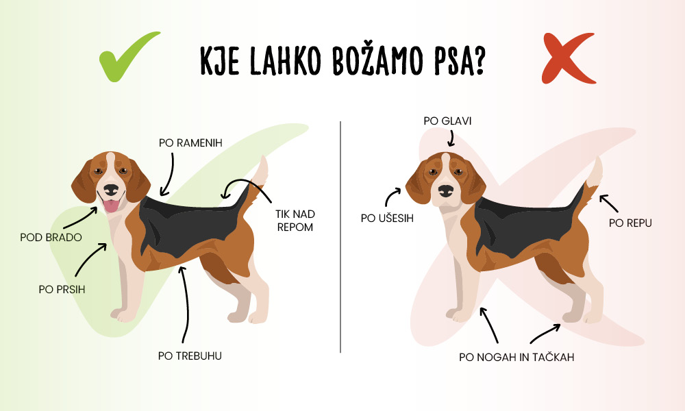 Sicer je to individualno, a vseeno so točke, kjer večina psov obožuje, da jih počohamo, in so točke, kjer bodo morda božanje sprejeli, a jim ne bo prijalo.